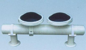 球冠形微孔曝氣器主要由曝氣膜片、支承托盤(pán)、螺旋壓蓋、螺紋接咀等部件組成,只要將橡膠膜片套在支承托盤(pán)上,用螺旋壓蓋擰緊即可。在安裝時(shí),再把支承托盤(pán)(中心有G3/4”內(nèi)螺紋通氣道)裝于布?xì)夤艿理敳康穆菁y接咀上。