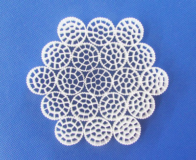 特殊的結(jié)構(gòu),空心填料結(jié)構(gòu)為內(nèi)外共有三層空心圓,每個圓內(nèi)有1條棱,外有36條棱,經(jīng)多次研究開發(fā)成功,采用一次成型。