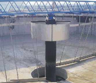 刮泥機(jī),是一種排泥設(shè)備。組成部分:刮泥機(jī)由桁車(chē)、刮泥耙、撇渣板、驅(qū)動(dòng)裝置和自控柜等到組成。分類(lèi):刮泥機(jī)主要有中心傳動(dòng)刮泥機(jī)、周邊傳動(dòng)刮泥機(jī)。中心傳動(dòng)刮泥機(jī)主要由工作橋、傳動(dòng)裝置、穩(wěn)流筒、傳動(dòng)軸、刮臂、刮泥板等組成。該機(jī)設(shè)有橫跨池子的固定平臺(tái),工作時(shí)其整機(jī)載荷都作用在工作橋中心;污水經(jīng)池中心穩(wěn)流筒均流到四周。隨著過(guò)流面積增大而流速降低,污水中的沉淀物沉淀于池底,刮泥機(jī)將沉淀的污泥刮集到中心集泥坑中,利用水壓將其從污泥管中排出。該機(jī)結(jié)構(gòu)簡(jiǎn)單,傳動(dòng)平穩(wěn),動(dòng)力消耗低,刮泥效果好,是一種理想的排泥設(shè)備;周邊傳動(dòng)刮泥機(jī)用于城市污水處理廠、自來(lái)水廠以及工業(yè)廢水處理中輻流式圓形沉淀池和濃縮池中,排除沉降在池底的污泥和撇除池面的浮渣。應(yīng)用領(lǐng)域:刮泥機(jī)主要應(yīng)用于鋼鐵、冶金、礦山、水處理等行業(yè)。