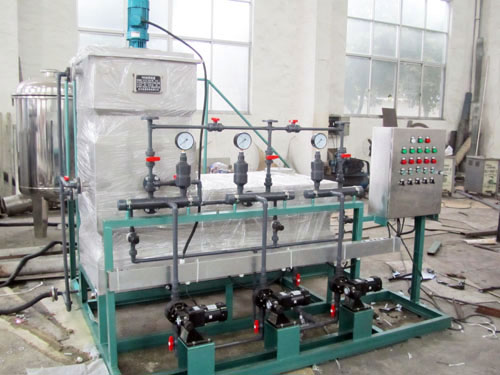 本機(jī)為整體安裝式,安裝方便,攪拌系統(tǒng)功率大并帶減振器,攪拌均勻.噪聲低,帶溶解槽筐和過濾器.藥液系統(tǒng)全部為防腐材料(環(huán)氧樹脂、PVC、PP、PE和不銹鋼等)耐腐性好。